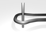 Es soll ein gegebener Knoten eingelesen werden. Der Knoten wird als ein Link (s.o.) betrachtet, indem wir die z-Achse als Teil eines zweiten (Un-)knotens auffassen, der entlang der z-Achse läuft, dann einmal ganz außen um den ersten Knoten herum und von der negativen z-Achse wieder entlang der z-Richtung durch den ersten Knoten hindurch. Dieser zweite Knoten wird nicht in der Datei mit angegeben oder extra eingelesen, sondern er existiert nur implizit innerhalb des Programms bzw. innerhalb der nötigen Algorithmen. Auf diese Weise vereinfacht sich das Datenformat und die Darstellung erheblich.