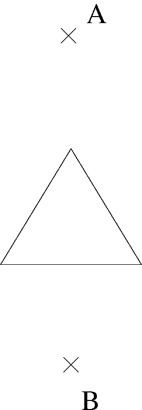 P = 3.0 5.0;5.0 6.0;7.0 5.0 (dreieckiges Polygon als Hindernis)