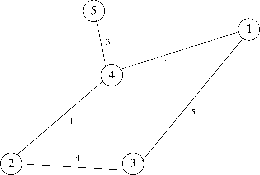 SelbstverstĂ€ndlich brauchen wir auch ein Dateiformat, um einen gewichteten Graphen abzuspeichern. Anhand des folgenden Beispiels sollte die Struktur klar sein. Die in der ersten Zeile angegebenen Ecken werden durchnummeriert beginnend bei 1.In der Datei wird im Weiteren die Nummer als Identifikation fĂŒr die Ecke benutzt. Die Koordinaten der Ecken werden nur der Form halber mit abgespeichert.