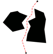 - Ăberleg dir, wie man ĂŒberprĂŒft ob eine Strecke ein Polygon schneidet. Entwickle daraus einen Algorithmus. Als Eingabe erhĂ€lt der Algorithmus ein geschlossenes Polygon und zwei Ecken (siehe Szenariodatei), und als Ausgabe erhĂ€lt man die Antwort ob die direkte Verbindung der beiden Ecken das Polygon schneidet oder nicht. Dokumentiere deine Ăberlegungen und dein Vorgehen und beachte, dass der Algorithmus möglichst schnell/effizient ist, da er in der nĂ€chsten Teilaufgabe viel benutzt wird.