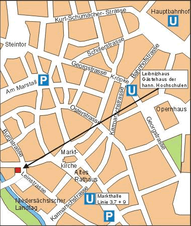 After your arrival at Hannover airport, you may take a taxi to your hotel. The fee for the transfer should be about EUR 20-25 if your hotel is located downtown, where the Leibnizhaus is located as well (see the Accomodation page for further information). Another possibility is to use the train line S5 from the airport directly to the central station.