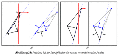 Aufgrund der einfacheren Berechenbarkeit wird nicht das Voronoi-Diagramm, sondern die duale Delaunay-Tesselierung erstellt. Diese wird mit Hilfe numerisch stabiler Prädikate und eines robusten Flipping-Algorithmus berechnet.