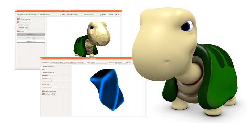 Im Rahmen dieser Veranstaltung wird neben der direkten Verwendung der Grafikkarte durch die OpenGL Schnittstelle auch ein einfacher Software-Renderer programmiert. Dieser ist der Struktur einer modernen Grafikpipeline nachempfunden und ermöglicht so einen Blick "Hinter die Kulissen" von z.B. Computerspielen und aktueller Grafikanwendungen. Auch aktuelle Konzepte, wie Shaderprogrammierung und visuelle Effekte, sind integraler Bestandteil dieses Kurses.