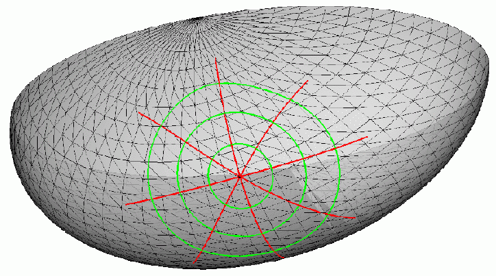 Example of geodesic circles (distance gauge figure) by T. Rausch.