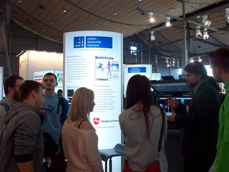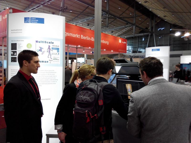 Das interaktive 3D-Simulationsmodell des menschlichen Körpers soll molekulare, zellulare, organische, metabolische und 3D-Bewegungsaufnahmen vereinen. Die Ziele sind eine bessere Vorhersage und patientenangepasstere Behandlung bei Erkrankungen des Muskel-Skelett-Systems. Das Projekt MultiScaleHuman, in dem das Forschungsvorhaben angesiedelt ist, ist ein europäisches Marie-Curie-Training-Netzwerk. Ziel ist es, die Funktionalität des menschlichen Körpers in einer neuen, dynamischen Art und Weise darzustellen. Hinter dem Projekt steht ein europäisches Netzwerk mit Partnern aus vier Ländern, beteiligt ist unter anderem auch die Medizinische Hochschule Hannover (MHH). Die Forschergruppe unter der Leitung von Prof. Franz-Erich Wolter und Dr. Karl-Ingo Friese hat das Projekt im März 2013 und 2015 auf der CeBIT vorgestellt.
