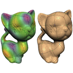 An iterative relaxation algorithm simultaneously refines this initial complex to produce a globally smooth parameterization of the surface. From this, we can construct a well-shaped quadrilateral mesh with very few extraordinary vertices.The quality of this mesh relies on the initial choice of eigenfunction, for which we describe algorithms and heuristics to efficiently and effectively select the harmonic most appropriate for the intended application.