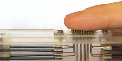 The quality of today’s visual and acoustic presentation requires little improvement even on home- or office computers. Haptic interaction is usually limited to using a keyboard and mouse. In research and development as well as design applications however force feedback devices are already in use. These devices aren't suitable for general applications though. It is desirable to replicate the impression of touching an objects surface in a simple manner, without using tools that limit the possible range of perception. There are currently only a few selected prototypes that recreate single stimuli of tactile perception, and no devices that offer an integrated representation across several channels.