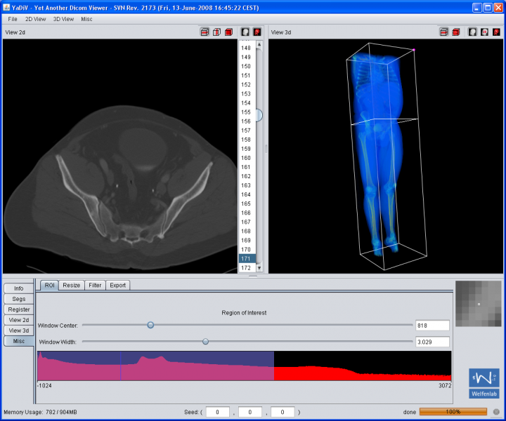 YaDiV ("Yet Another DIcom Viewer") ist ein Programm zur interaktiven Visualisierung von 3D Volumendaten aus dem Bereich der Medizin. Das Programm kann Daten im DICOM Format (genaugenommen DICOM File Sets) einlesen und enthält u.a. Module zur